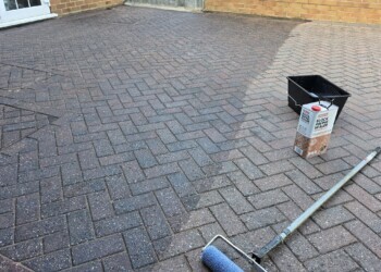 We add the paving sealer over the paving by either spraying or brushing it in, depending on the area. Normally, we add 2 coats to ensure a strong barrier. This restores colour and prevents further degradation of your old paving. Call today for a free, low cost quotation on restoring your old paving instead of replacing!